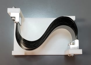 Pictured: 3 Flight Model PyroFlex™ Thermal Straps with HCCF Fittings in shipping fixture. |